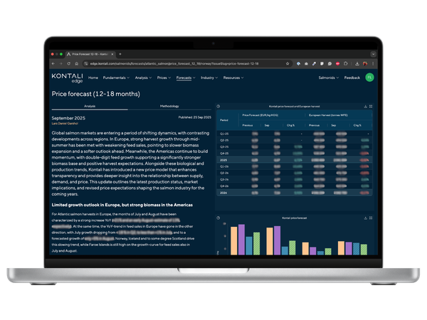 Longer-term visibility on salmon prices is essential for planning beyond seasonal cycles. Reliable 12-18 months forecasts help users anticipate risks, adapt strategies, and manage expectations in an industry where even small shifts in supply and demand can have outsized impacts. Kontali’s analysis enables stakeholders to bridge short-term market signals with longer-term investment and strategic decisions.