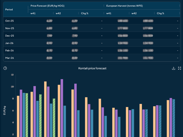 Spot prices give you today’s market snapshot, but they don’t help you prepare for what’s ahead. Kontali’s price forecast goes beyond current prices by combining historical data, production models, and market insights to project where prices are likely heading over the next six months. With weekly analysis and continuous monitoring, we provide early signals on supply and demand shifts, seasonal effects, and policy changes that impact global salmon markets. This allows you to reduce uncertainty, make informed decisions, and stay ahead in a volatile industry.
